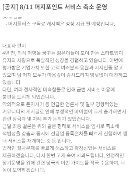 대표자가 긴급하게 올린 편지는 아래와 같습니다. 과연, 머지포인트는 회생의 가능성이 있을까요?